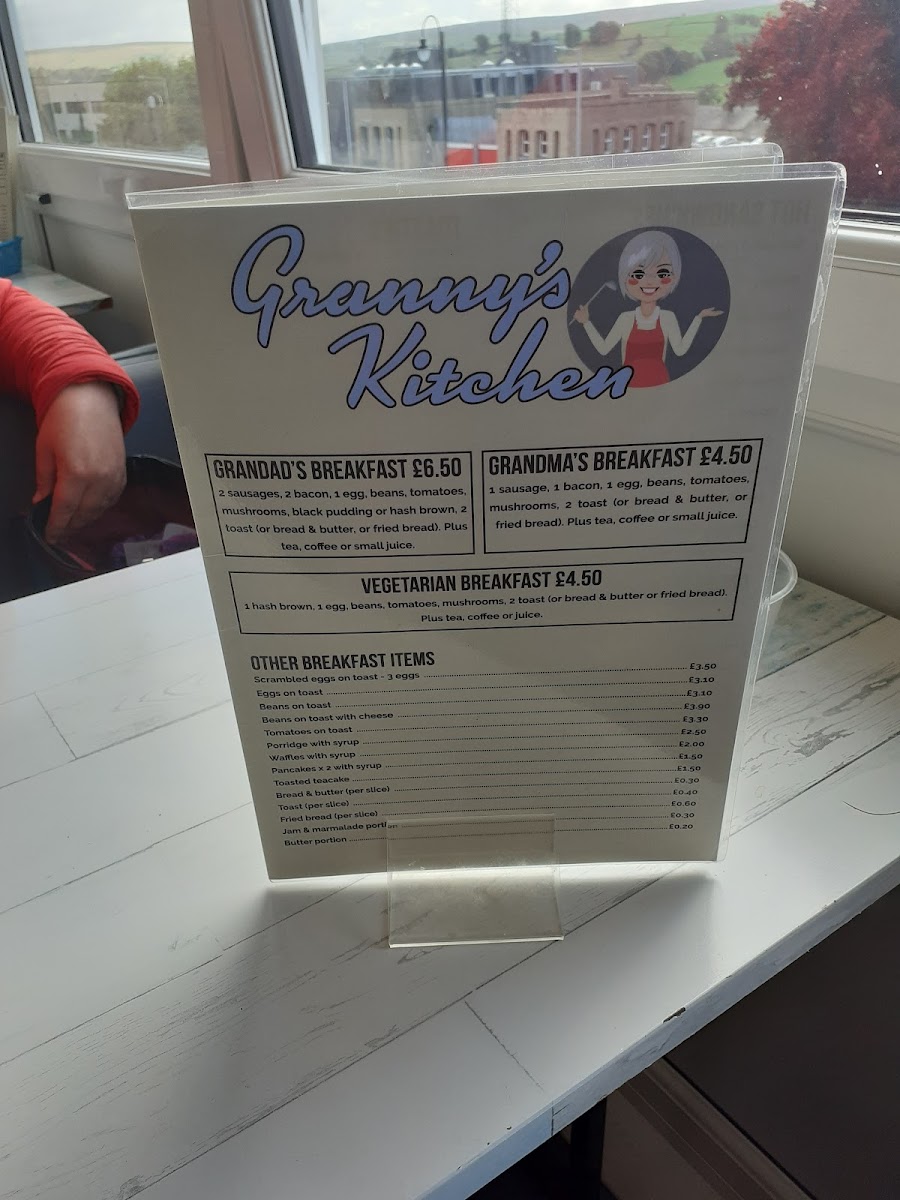 Welcome to Granny's Kitchen, a charming café nestled in Colne, UK, where nostalgia meets hearty home-cooked meals. The menu boasts an array of delicious options, including hot sandwiches like bacon and chip or sausage with fried onions, perfect for a cozy meal any time of day.